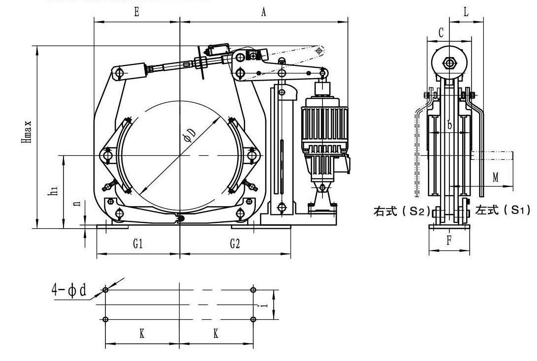 ▲ 常閉式設(shè)計,(斷電)彈簧制動,(通電)推動器釋放。
