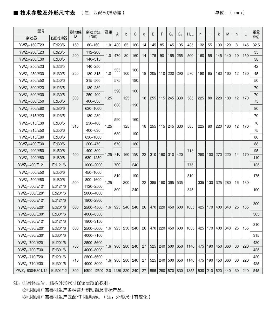 ● 產(chǎn)品型號(hào):YWZ5-160、YWZ5-200、YWZ5-250、YWZ5-315、YWZ5-400、YWZ5-500、YWZ5-630、YWZ5-710、YWZ5-800